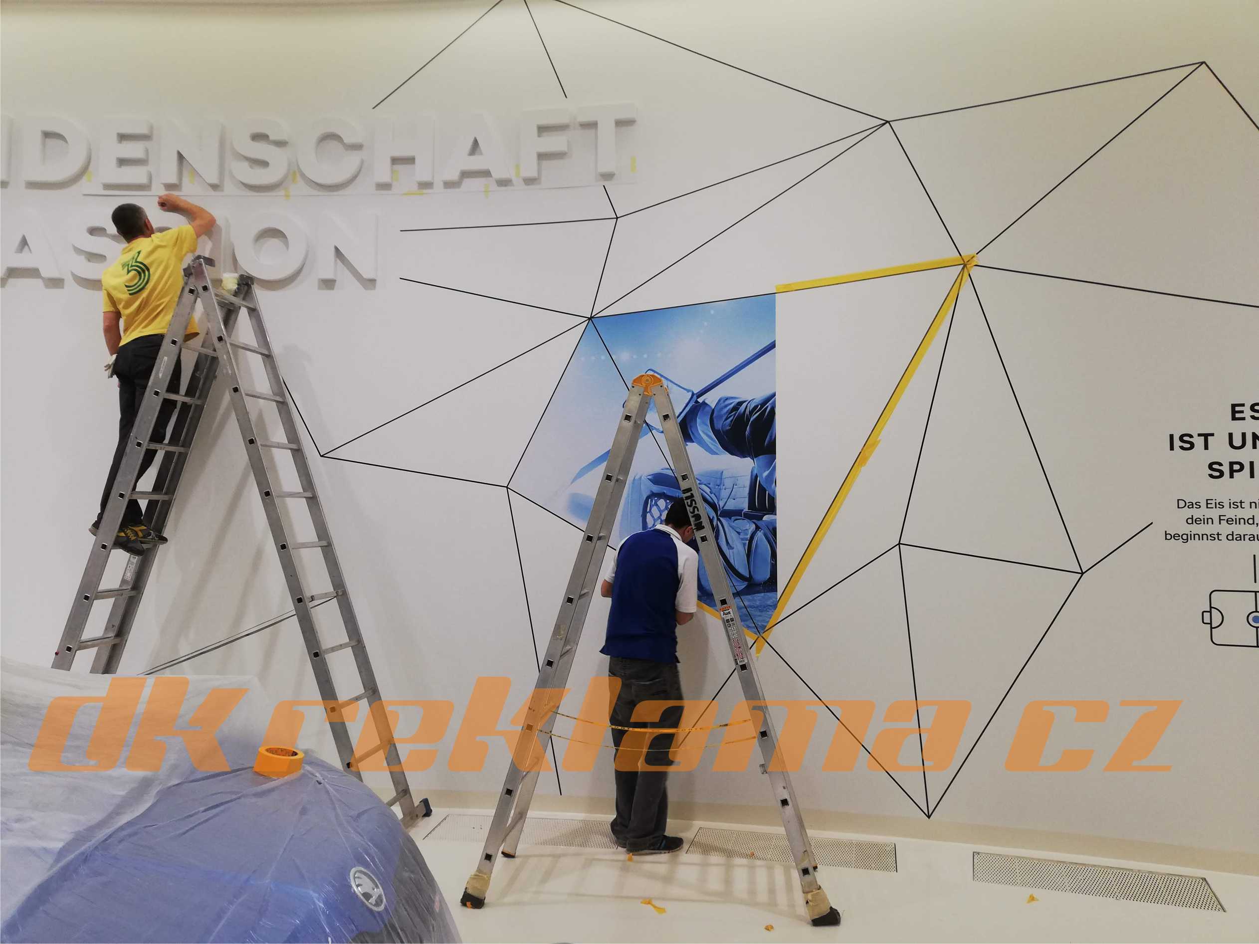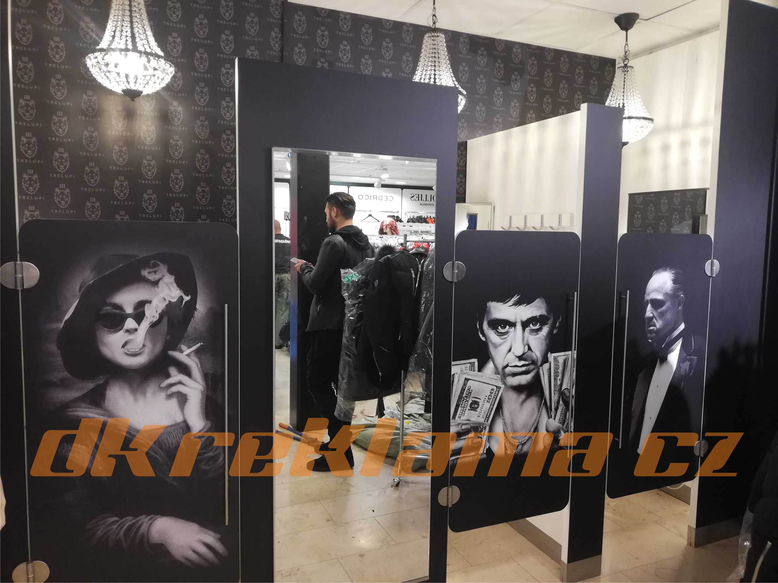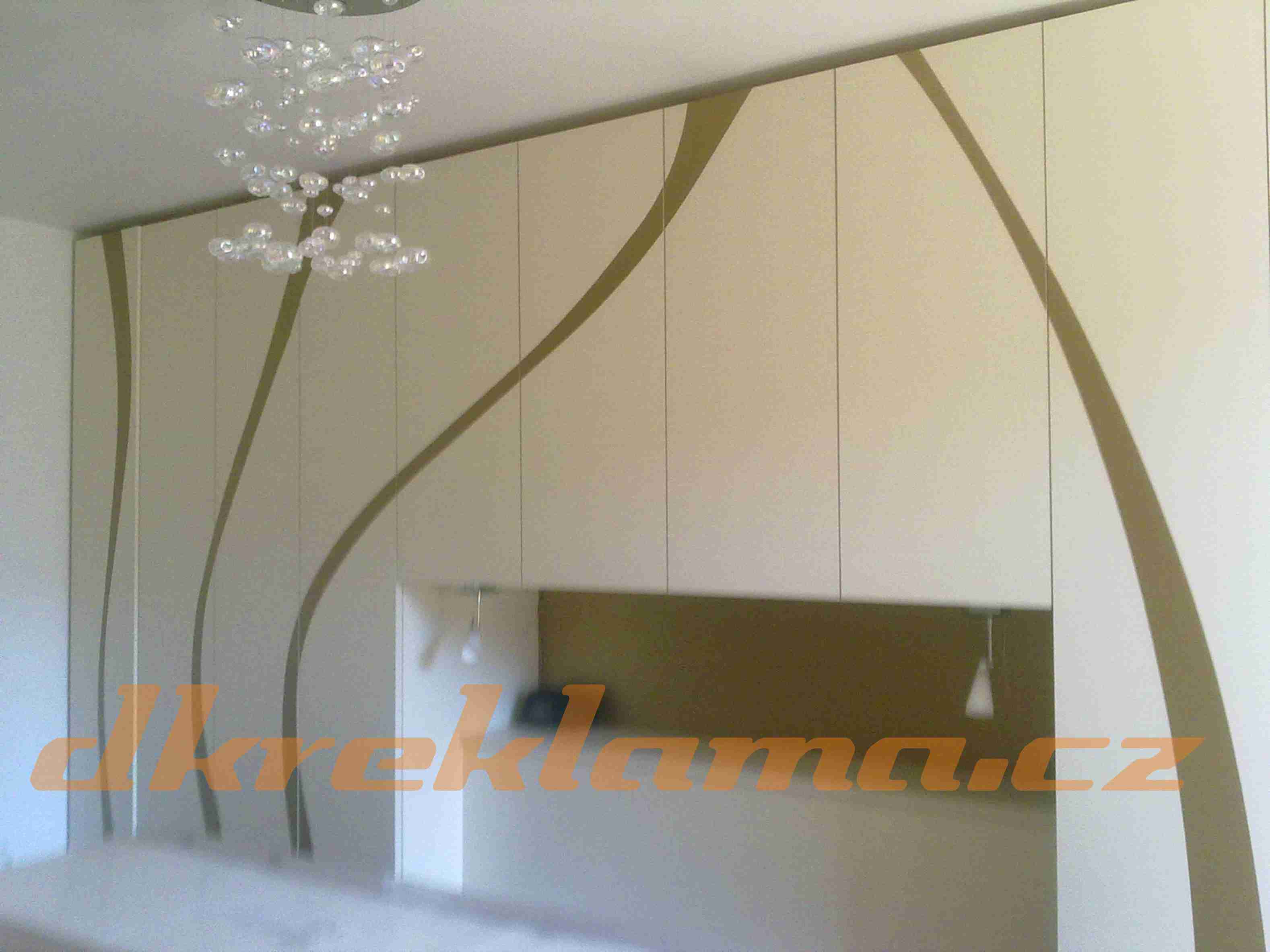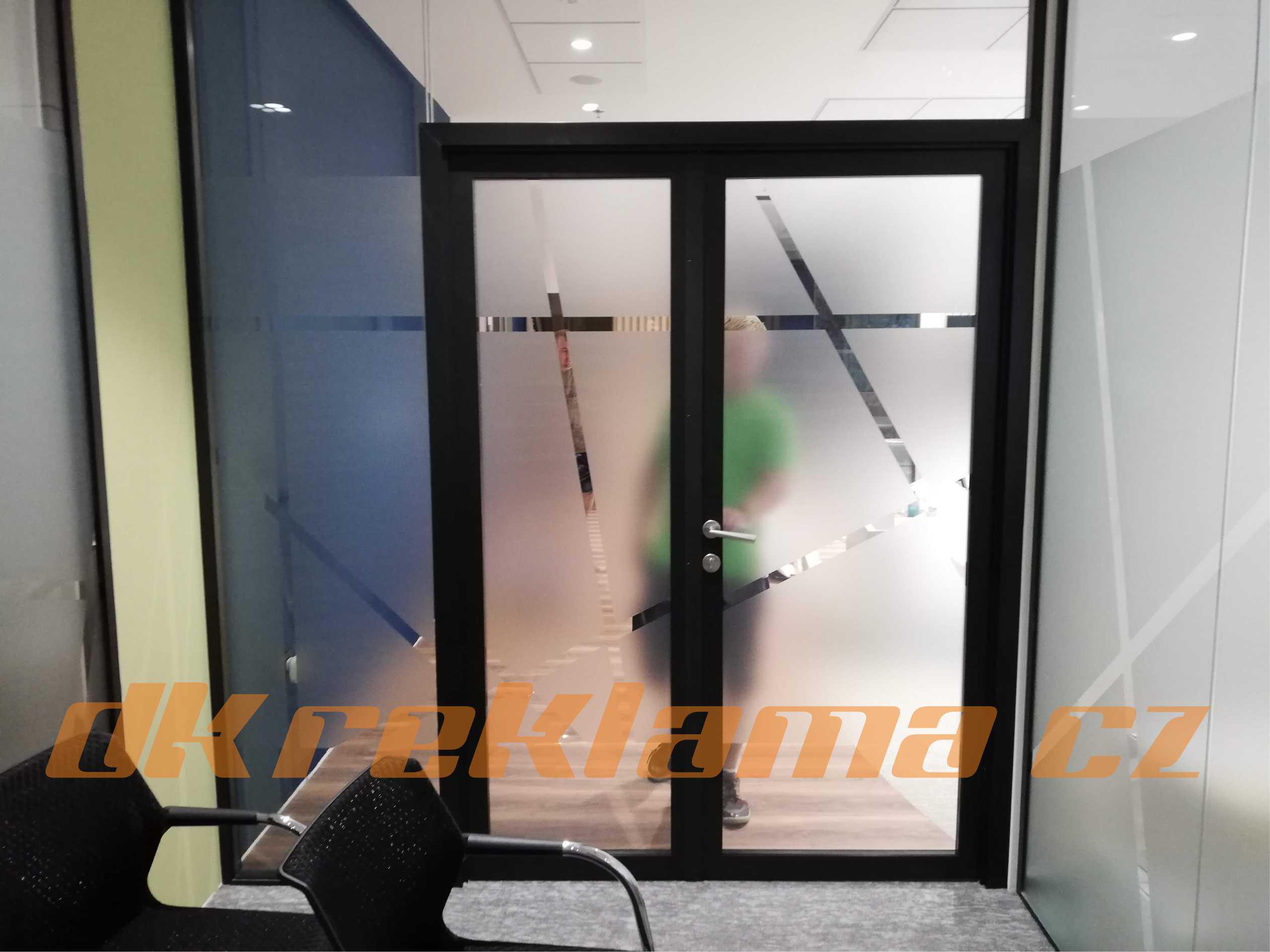 Používáme speciální interiérové  Wall Wrap  fólie,  pískované sklo atd.