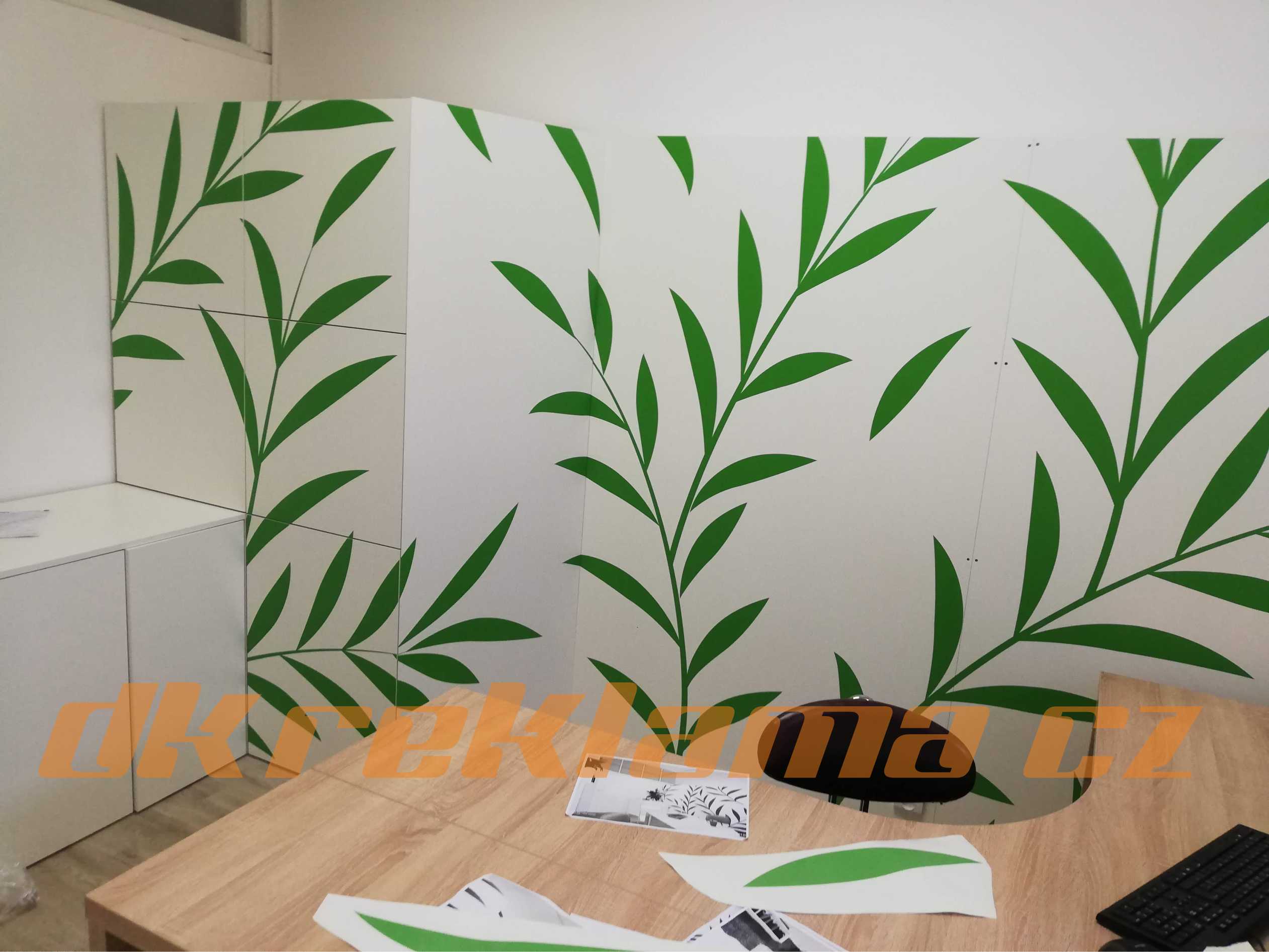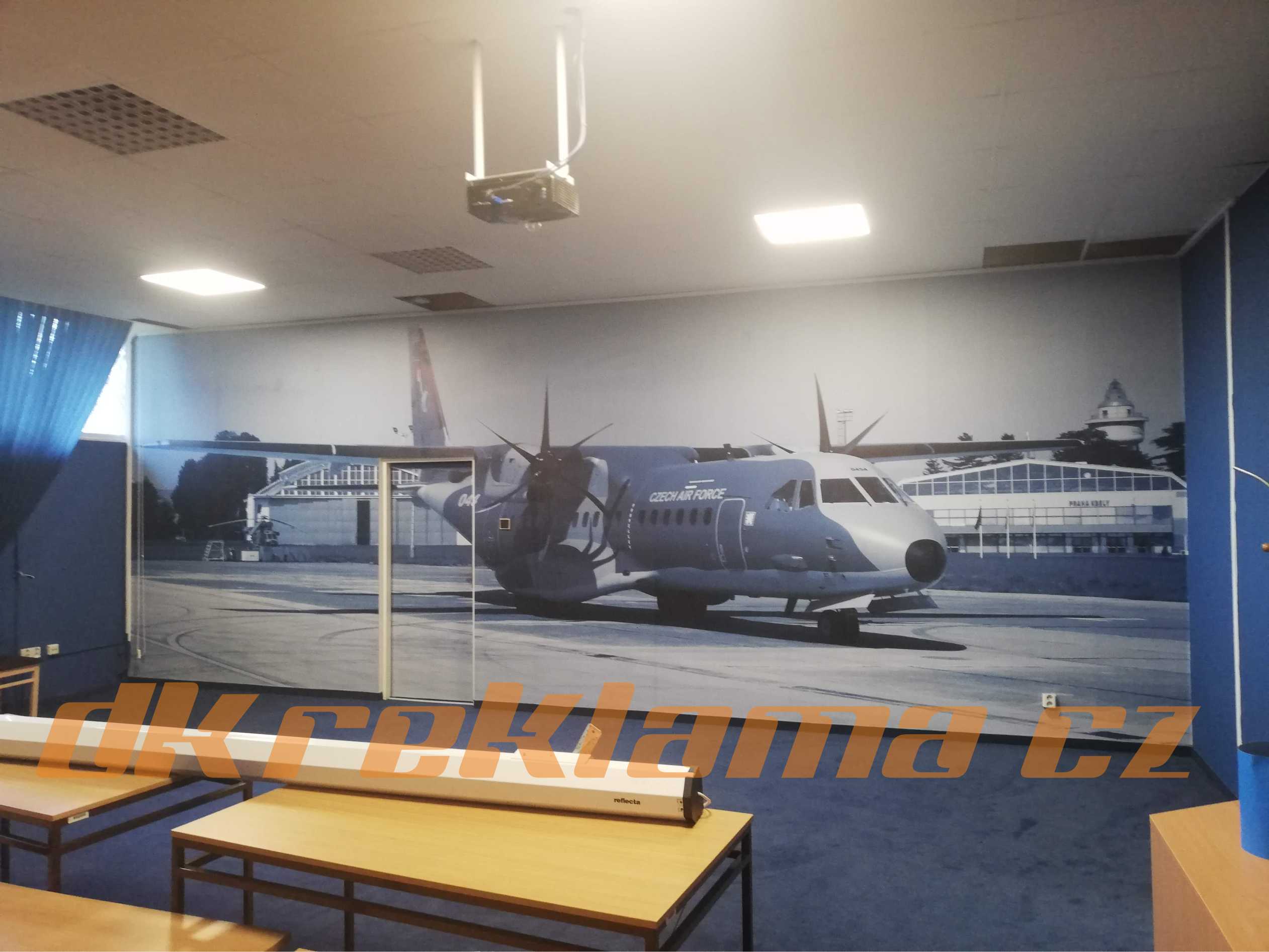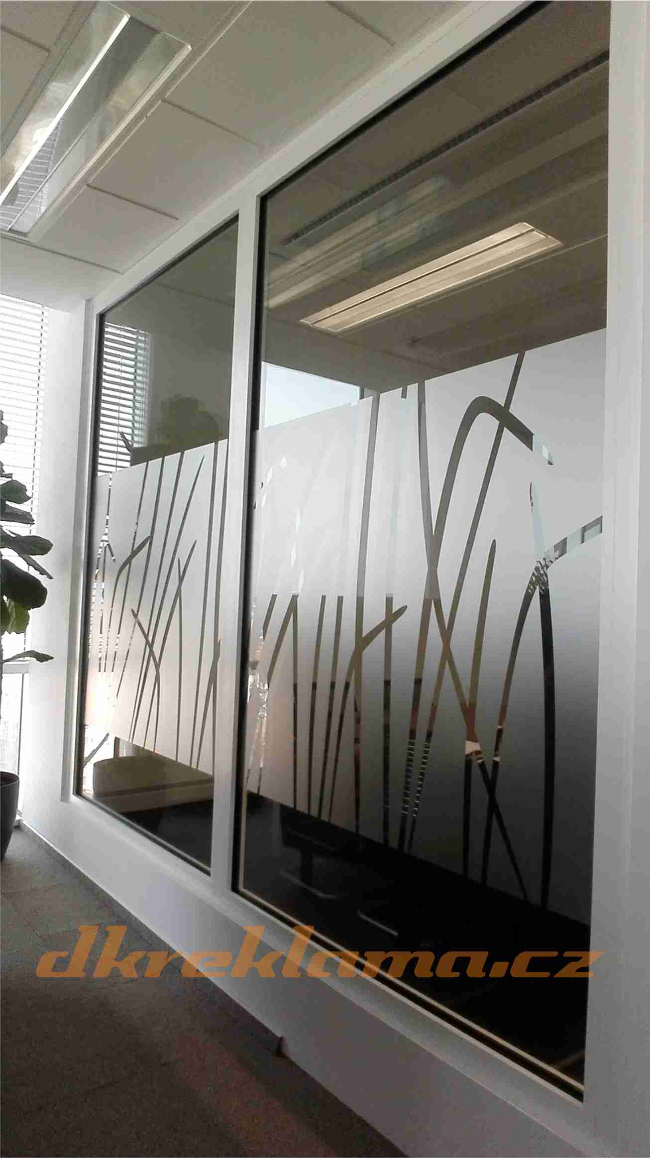Používáme speciální interiérové  Wall Wrap  fólie,  pískované sklo atd.
