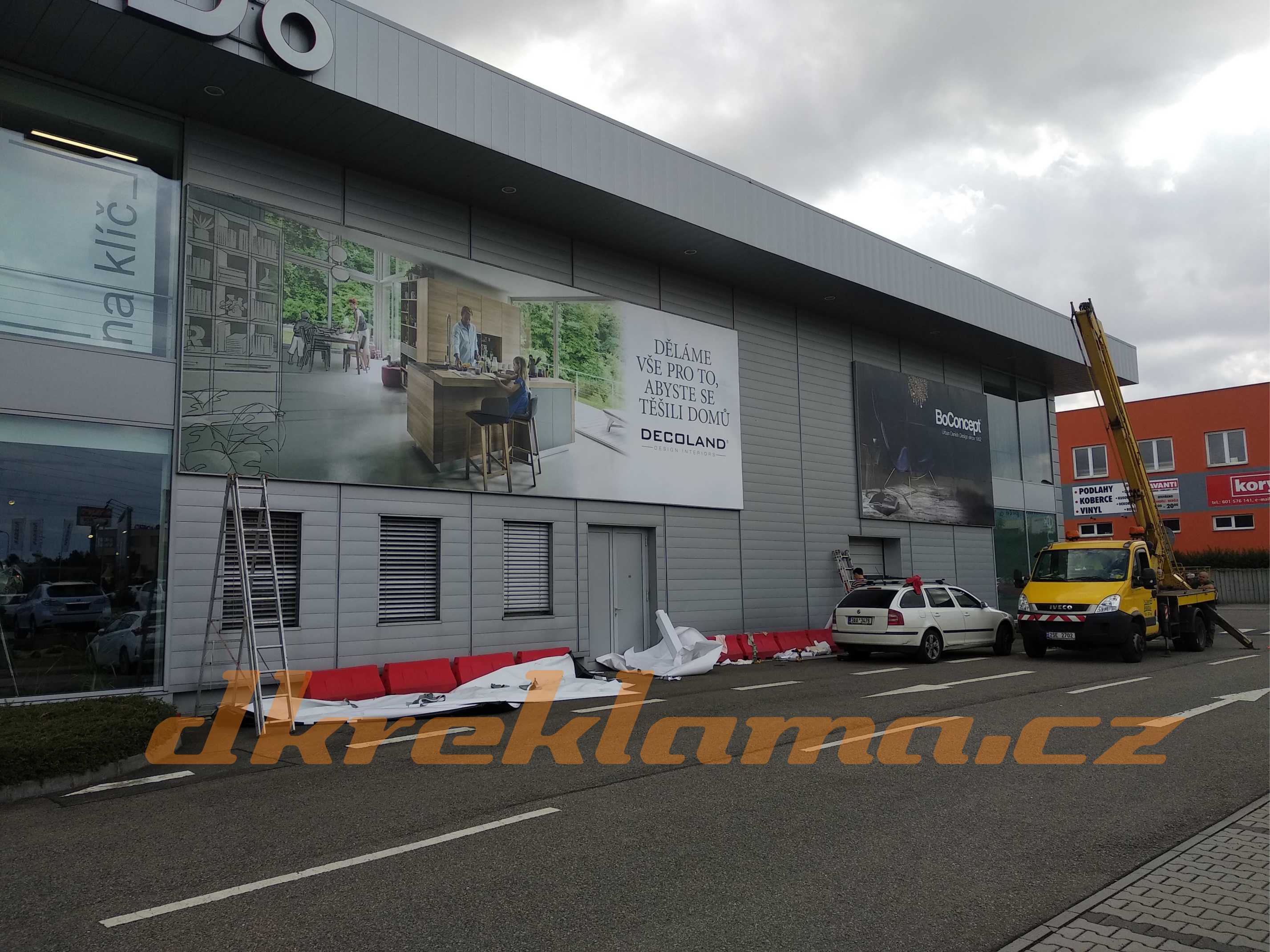 Polepy výloh a štítů realizujeme na základě grafického návrhu aplikovaného do fotografie budovy – provozovny, pro lepší představivost zákazníka. Cena se stanovuje individuálně, odvíjí se od velikosti plochy polepu, spotřeby materiálu ( s podkladem ) a složitosti aplikované grafiky. Lze využít velkoplošného tisku nebo řezané reklamy, záleží na grafickém zpracování.